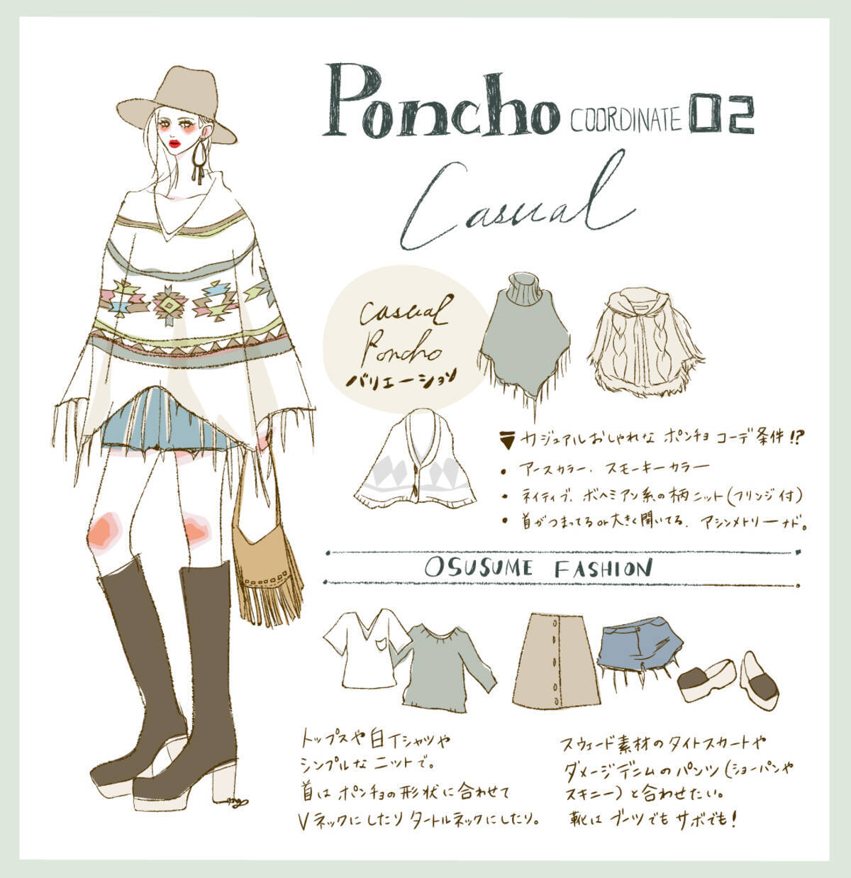 秋から真冬まで使える ポンチョのアレンジとおすすめコーデ術 イラスト ローリエプレス